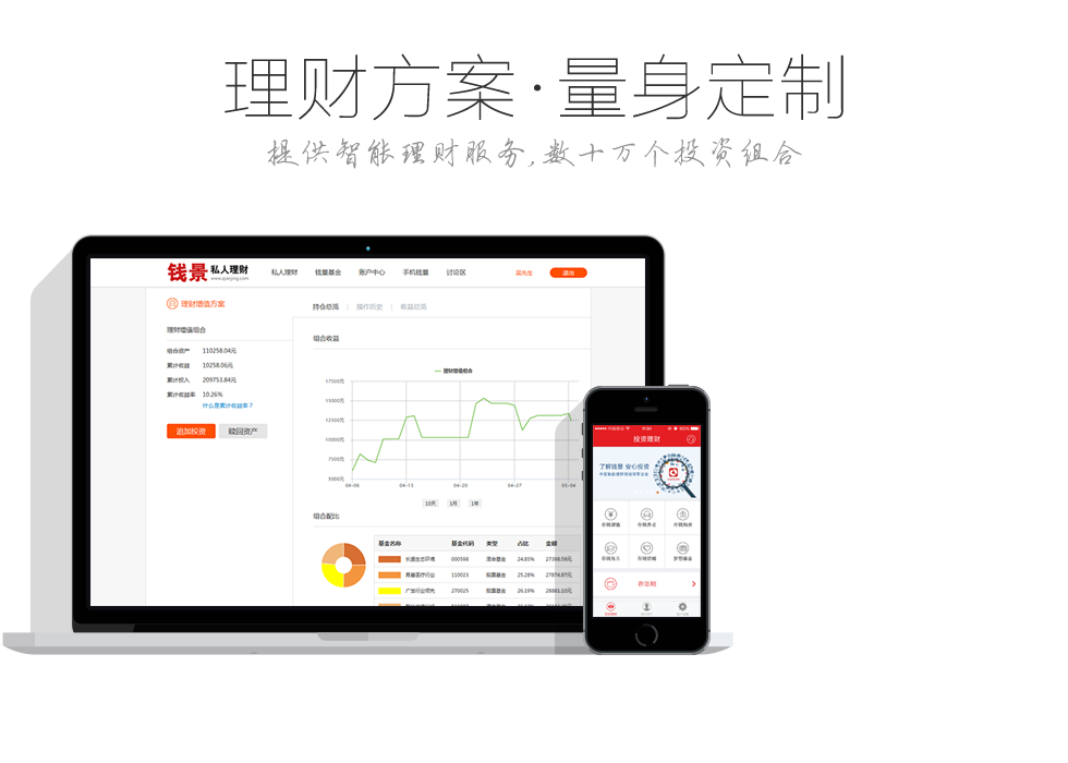 錢景提供的所有理財(cái)產(chǎn)品(包括公募基金產(chǎn)品、基金公司及其子公司專戶產(chǎn)品、私募投資基金和其他理財(cái)產(chǎn)品等)均由第三方機(jī)構(gòu)管理,錢景不對(duì)理財(cái)產(chǎn)品業(yè)績(jī)做任何保證,投資者應(yīng)仔細(xì)閱讀理財(cái)產(chǎn)品的法律文件,了解產(chǎn)品風(fēng)險(xiǎn)和收益特征(包括系統(tǒng)性風(fēng)險(xiǎn)和特定產(chǎn)品所特有的投資風(fēng)險(xiǎn)等)。投資者應(yīng)根據(jù)自身資產(chǎn)狀況、風(fēng)險(xiǎn)承受能力選擇適合自己的理財(cái)產(chǎn)品。錢景提供的宣傳推介材料僅供投資者參考,不構(gòu)成錢景的任何推薦或投資建議。投資者應(yīng)審慎決策、獨(dú)立承擔(dān)風(fēng)險(xiǎn)。